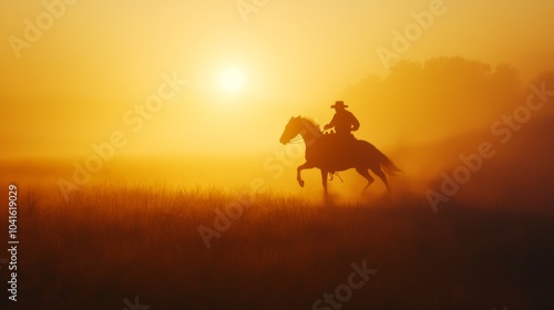 Lone Cowboy Racing Into Sunset on Wild West Plains - Ultra-Detailed, Cinematic Light