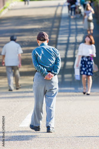 lonely asian old man walking in the park