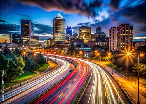 Long Exposure City Lights at Night - Dark Urban Scene Photography