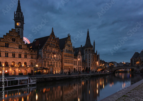 Long Exposure of the twilight by the Ghent waterfront in christmas