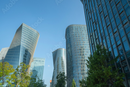 Looking up at the skyscraper in the financial center