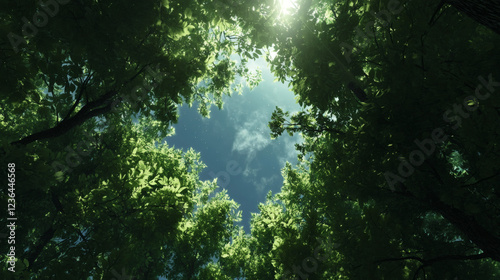 looking up green forest tree