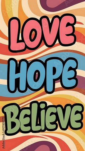 Love, Hope, Believe colorful background and text (T-shirt Design Motivational Quote, Illustration ,Typography)