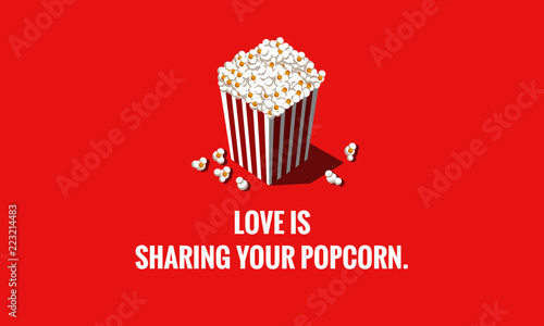 Love is Sharing Your Popcorn Box Vector Illustration Quote Poster