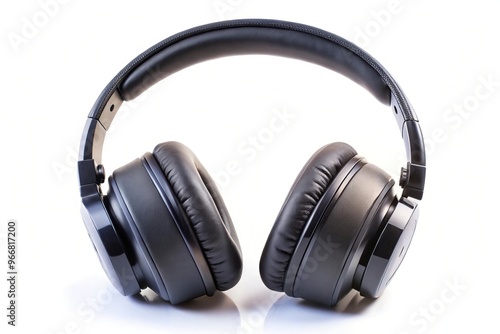 Low angle view of wireless headphones, isolated on white background