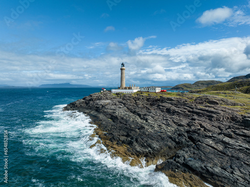 Luftbild vom Ardnamurchan Point mit dem 35 Meter hohen Leuchtturm, am westlichsten Punkt der britischen Hauptinsel, Ardnamurchan