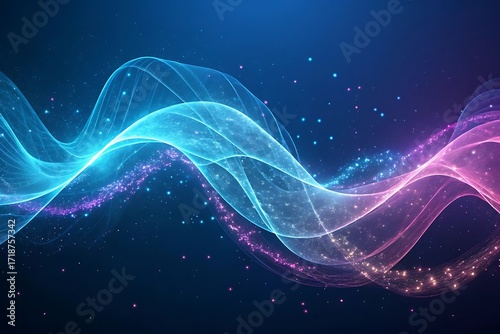 Luminous Blue and Pink Energy Waves with Glittering Particles