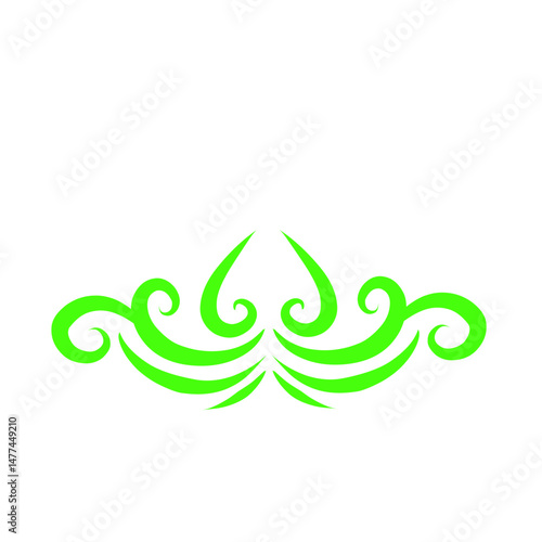 Luminous green scrollwork design on a dark background creates contrast and drama