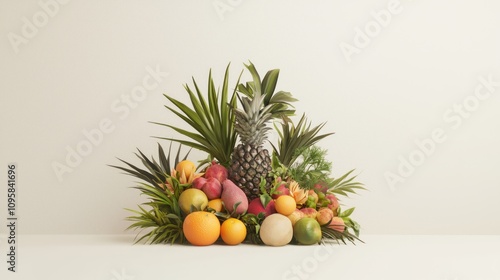 Luscious Tropical Fruits Montage - Vibrant Botanical Delights on White | Nature's Bounty Artwork