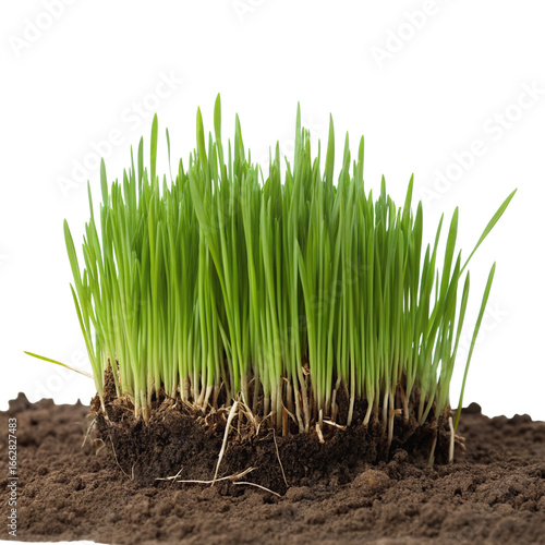 Lush green grass growing in fertile soil for gardening and landscaping purposes in natural setting