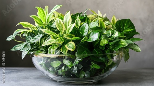 Lush Green Indoor Plant Arrangement in a Glass Bowl Beautiful Home Decor