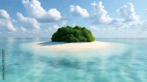Lush Green Island in Turquoise Ocean Under Blue Sky