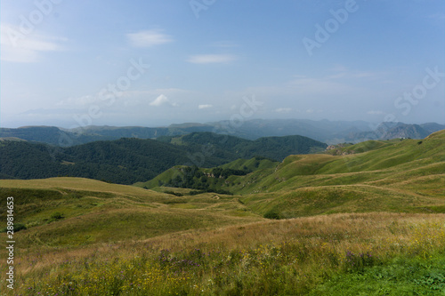 Lush green lawns meadows and mountains above 2000 m on the gumbashi pass in the northern caucasus between dombay and kislowodsk, raw original picture