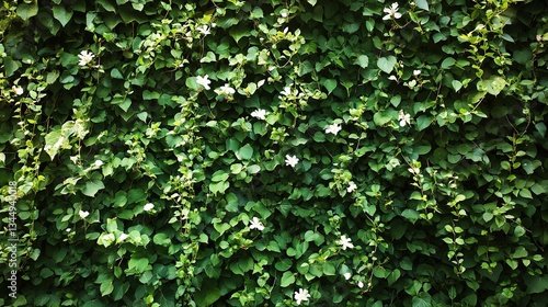 Lush Green Wall Covered with Intertwining Foliage and Flowers