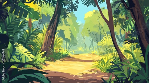 Lush Tropical Forest Path Sunlight Dappled Greens