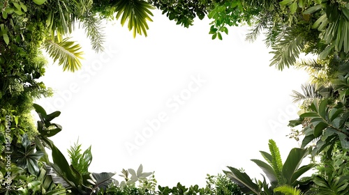 Lush, vibrant foliage creates a natural green border framing bright white space.