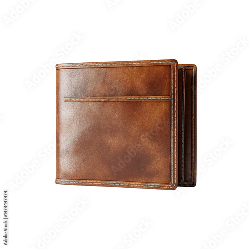 Luxurious Brown Leather Wallet - Closed, Isolated on transparent background