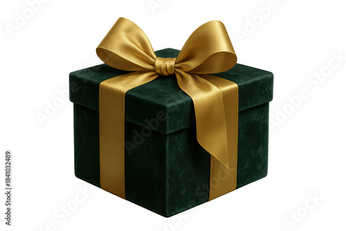 Luxurious green velvet gift box with elegant gold ribbon, representing celebration, presents, and surprise