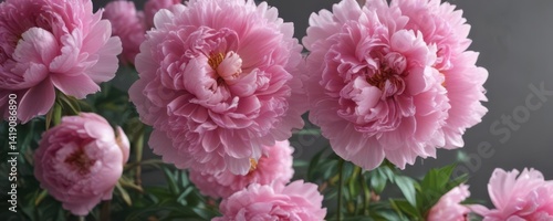Luxurious pink peonies in full bloom, soft, romantic backdrop, feminine, background, bloom