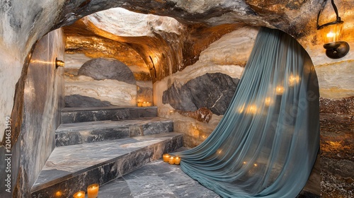Luxurious Spa Cave with Stone Walls and Teal Drape