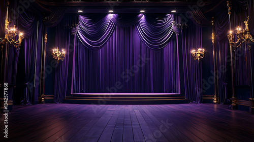 Luxurious Vintage Theater Stage with Velvet Curtains and Golden Decor