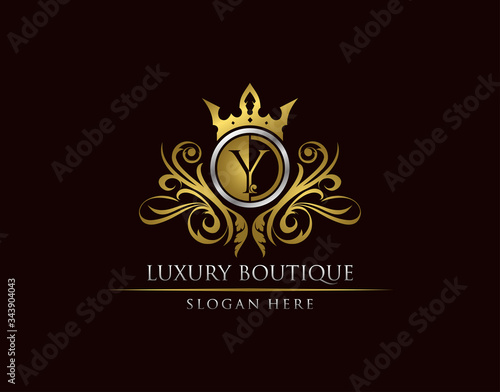 Luxury Boutique Y Letter Logo, Circle Gold Crown Y Classic Badge Design
