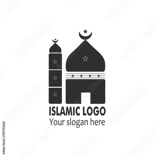 Luxury Muslim Learn logo, Islamic Logo Vector Design, Vector illustration, Mosque icon vector, Silhouette Islamic Vector Logo, Abstract emblem, Islam learning logo template, black and white logo,