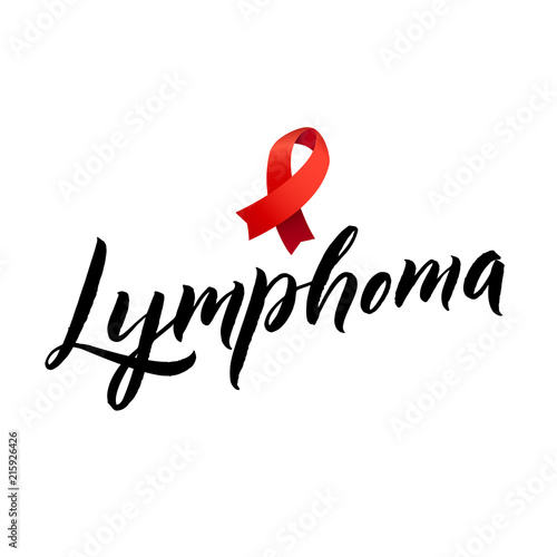 Lymhpoma Poster. Blood Cancer Awareness Label. Vector Tamplate with Red Ribbon - Symbol of Cancer Fight