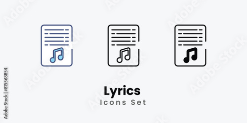 Lyrics Icons thin line and glyph vector icon stock illustration