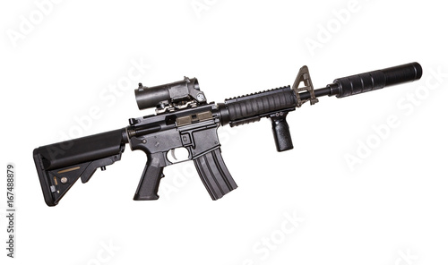 M15A4 Rifle Isolated on White Background. Rifle of the Armed Forces. Assault Rifle. Military Gun
