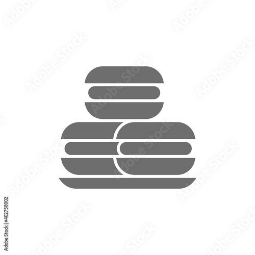 Macaroons, macarons, cakes, sweet bakery grey icon.