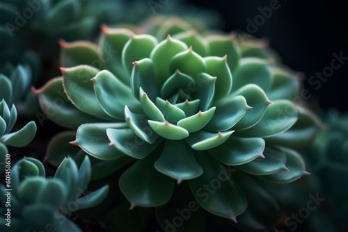 Macro of a succulent plant. Close up of a teal cactus. Teal cactus leaves. Tidewater green background. Cactus plant pattern wallpaper. AI generated content