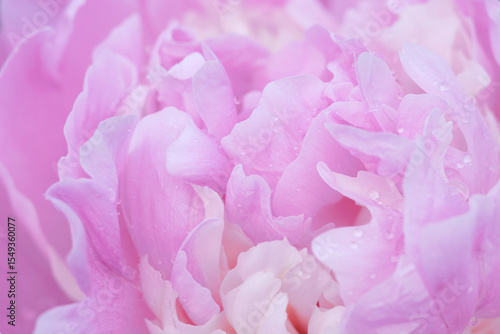 Macro photo of pale pink peony petals with soft lighting and texture. Full frame.