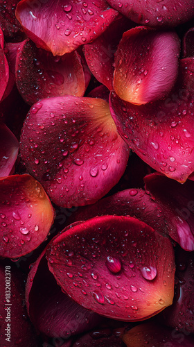 Macro Red Rose Petals Texture with Water Drops