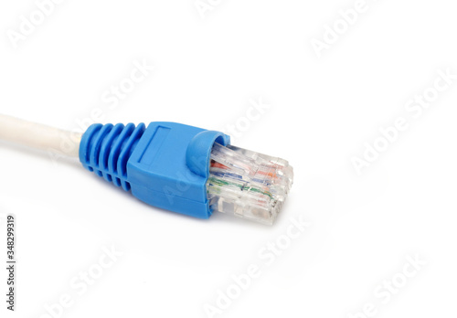 Macro shot of network connection plug RJ-45,LAN network connection ethernet cable .