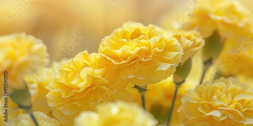 Macro shot of yellow Dianthus Carnation petals with shallow depth of field and selective focus blank space for text