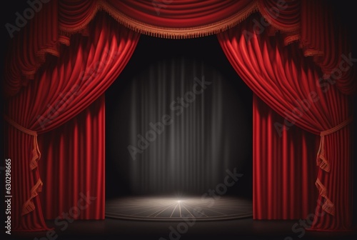 Magic theater stage red curtains Show Spotlight. Generative AI