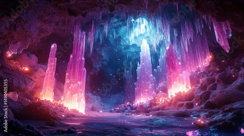 Magical cave with glowing crystals