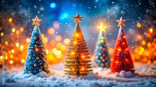 Magical Christmas Trees in a Winter Wonderland Sparkling Stars and Festive Lights Creating Holiday Cheer and a Dreamy Atmosphere