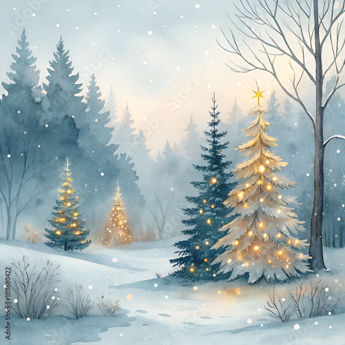 Magical forest winter wonderland filled with glowing holiday trees