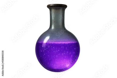 Magical purple liquid potion in a glass flask, isolated on transparent background