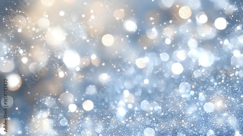 Magical winter bokeh background with sparkling glitter and blurred lights in silver and gold tones, creating dreamy festive atmosphere for holiday designs.
