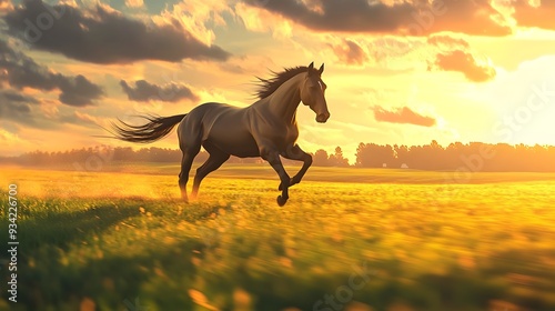 Magnificent Arabian Horse Racing Through Picturesque Countryside in Dynamic Illustrative Poses