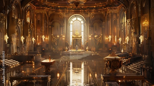 Magnificent traditional music staging set in an ornate achievement hall lighted by electricity