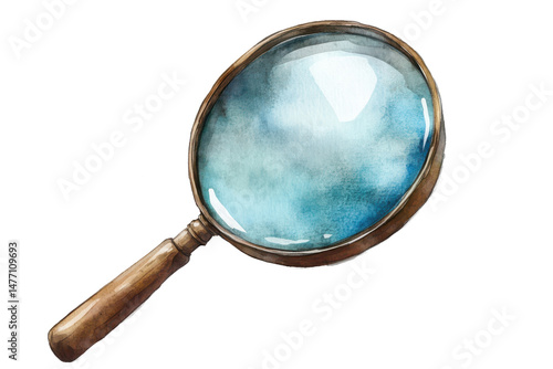 Magnifying glass watercolor illustration on transparent background