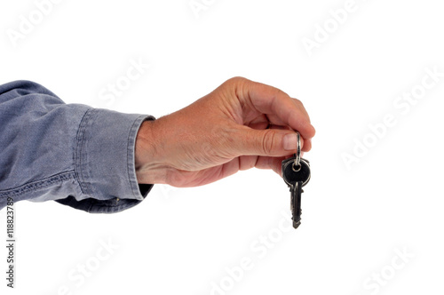 Main d'homme tendant des clés