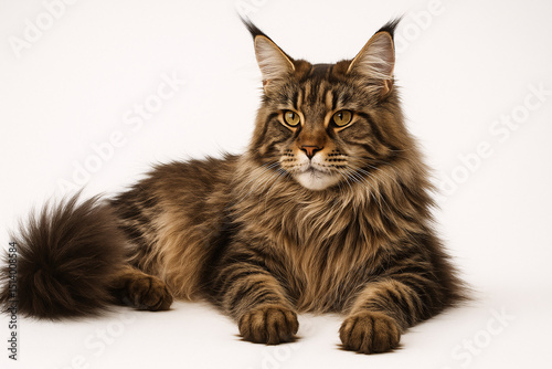 Maine Coon Cat Lying Down, White Background