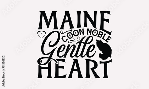 Maine Coon Noble Gentle Heart - Maine Coon Cat T-Shirt Design, Illustration For Prints On T-Shirts And Bags, Posters, Silhouette Cameo, Cricut, Eps, Files For Cutting.