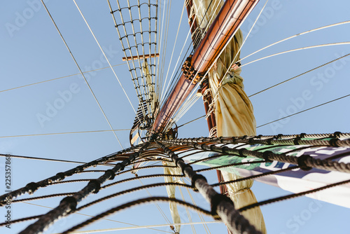 Mainmast and rope ladders to hold the sails of a sailboat.