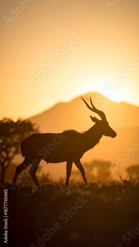 Majestic African antelope silhouetted against the golden sunset over the savannah